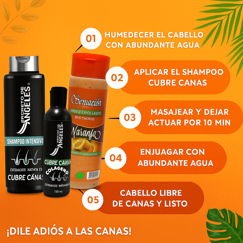 La mayoría de tintes requieren mucho tiempo, químicos fuertes o gastos en el salón. Nuestro Shampoo Cubre Canas ofrece: